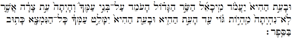 “And at that time, Michael, the great official, the one who stands concerning the Children of Israel, Your people; and there will be a time of tribulation which has not been since the nation until this time and at this time Your people will escape, all who are found written in the book.”